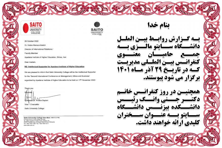 دانشگاه سایتو مالزی به جمع حامیان معنوی کنفرانس بین المللی مدیریت پیوست